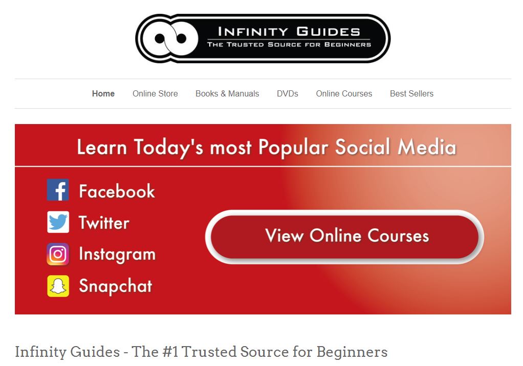 Infinity Guides is an all encompassing learning website where users can learn how to use social media and technology through online courses, books, and DVDs.